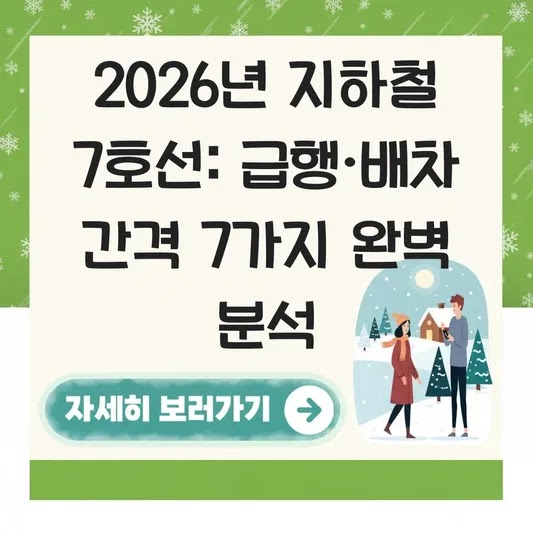 A1: 2026년 현재, 지하철 7호선은 별도의 급행열차를 운영하고 있지 않습니다. 모든 열차가 전 역에 정차하는 일반열차로 운행됩니다. 따라서 7호선 급행 정차역이라는 개념은 존재하지 않습니다.