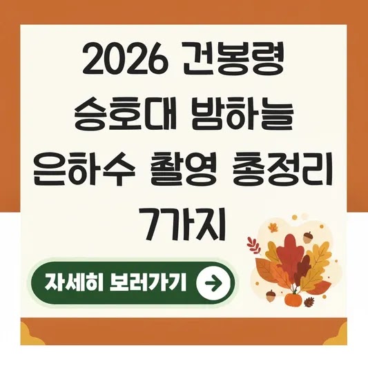이 글을 통해 2026년 최신 정보와 실제 경험 기반의 노하우로 건봉령 승호대에서 은하수를 성공적으로 촬영하는 모든 과정을 알아가실 겁니다.
